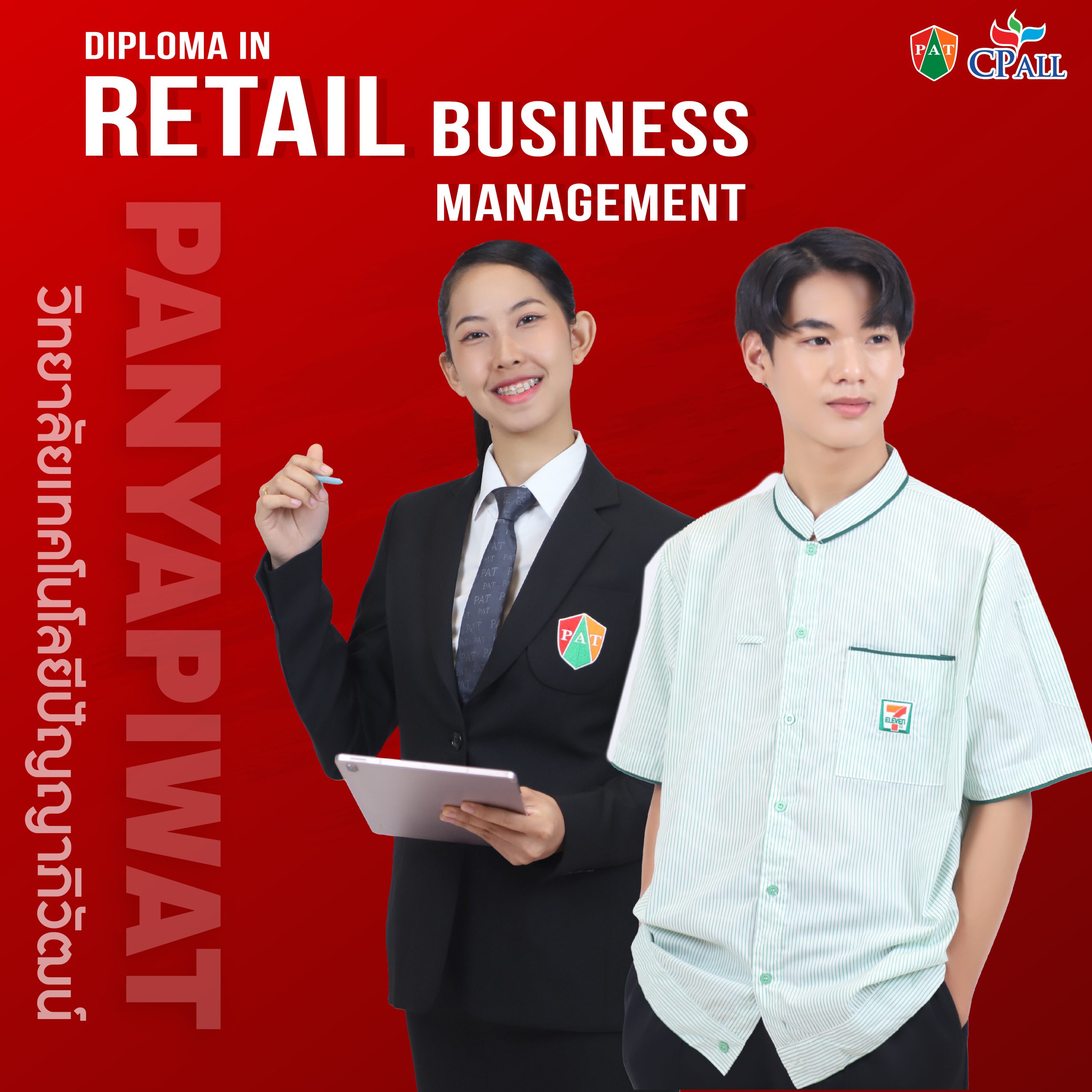 ได้ยินคำว่าปัญญาภิวัฒน์ สิ่งเเรกที่ทุกคนนึกถึงเลย คือ "เซเว่น"ค่ะ จุดเริ่มต้นเลย คือหนูมีพี่สาว ที่เขามาเรียนที่นี่ก่อน จึงพอได้รู้ถึงวิธีการเรียนมาคร่าวๆบ้างเเล้วว่า ที่วิทยาลัยเเห่งนี้มีการจัดการเรียนการสอนเเบบ Work-Based Learning ที่เป็นการเรียนสลับกับการฝึกงาน ที่นี่มีสาขาให้เลือกเรียนหลากหลายไม่ว่าจะเป็นสาขาไฟฟ้ากำลัง เเมคคาทรอนิค พอจบมัธยมศึกษาปีที่3 ก็ตั้งใจที่จะเข้ามาเรียนที่นี่เลยค่ะเพราะการเรียนที่นี่ตอบโจทย์ในเรื่องที่ทำให้เรามีประสบการณ์การทำงานควบคู่ไปพร้อมกับการเรียน อย่างที่ทราบกันนะคะว่าในภาคปฏิบัติ นักศึกษาสาขาธุรกิจค้าปลีกที่นี่ทุกคนจะได้มาฝึกงานกันที่สถานประกอบการเซ่เว่นอีเลฟเว่น ทำให้ได้เรียนรู้วิธีรับมือกับลูกค้า ได้ฝึกความอดทน เเละในการฝึกงานจะมีเบี้ยเลี้ยงให้กับนักศึกษา นอกจากนี้ CP All มีการมอบทุนเรียนฟรีตลอดหลักสูตร เเละนี่จึงเป็นจุดเริ่มต้นในการตัดสินใจมาเรียนที่นี่ค่ะ