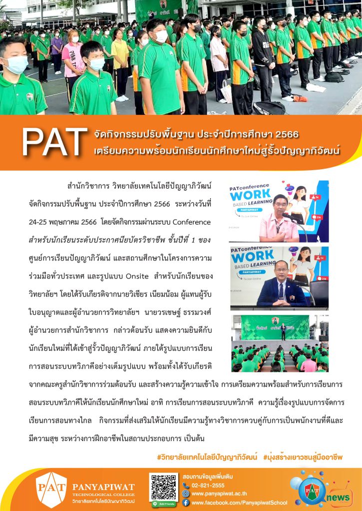 PAT จัดกิจกรรมปรับพื้นฐาน ประจำปีการศึกษา 2566 เตรียมความพร้อมนักเรียนนักศึกษาใหม่สู่รั้วปัญญาภิวัฒน์