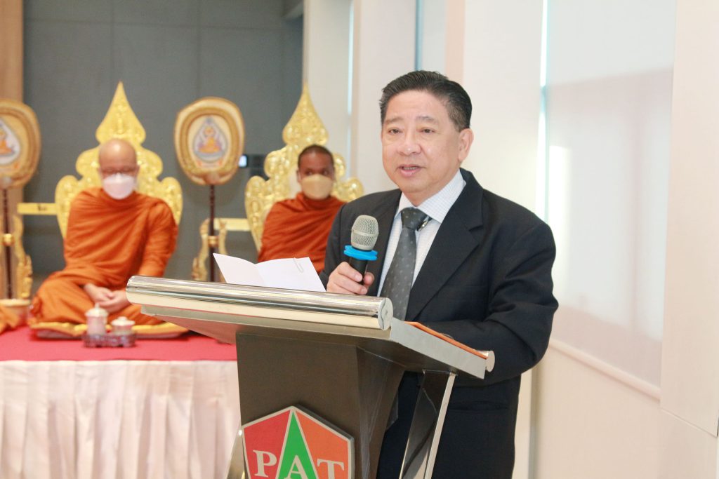 โอกาสนี้ นายปิยะวัฒน์ ฐินะสัทธาวรกุล ได้กล่าวแสดงความยินดีและความสำเร็จของการบริหารวิทยาลัยเทคโนโลยีปัญญาภิวัฒน์มาเป็นปีที่18 ซึ่งในปี พ.ศ.2548 บริษัทซีพีออลล์ได้ดำเนินการจัดตั้งวิทยาลัยฯเพื่อดำเนินการด้านการศึกษาในระบบทวิภาคีอย่างเต็มรูปแบบ โดยได้รับการรับรองมาตรฐานหลักสูตรและสถานศึกษาจากกระทรวงศึกษาธิการ ผลการดำเนินงานที่ผ่านมาช่วยพัฒนาระบบการศึกษาของชาติ โดยเฉพาะการพัฒนาคุณภาพของเด็กและเยาวชนให้มีความรู้ ความสามารถ ตรงกับความต้องการของภาคธุรกิจและสถานประกอบการ จึงขอให้ผู้บริหารวิทยาลัยฯ และบุคลากรร่วมกันพัฒนาองค์กรให้มีเจริญก้าวหน้ายิ่งๆขึ้น เพื่อสร้างเยาวชนให้มีคุณภาพ เป็นกำลังสำคัญของประเทศชาติต่อไป ในพิธีทางศาสนาวันนี้ พระปัญญานันทมุนี เจ้าอาวาสวัดชลประทานรังสฤษฏ์พระอารามหลวง ได้บรรยายธรรมในหัวข้อ “ ความสุขอยู่ที่ใดหนอ “ ให้กับผู้ร่วมพิธีด้วย