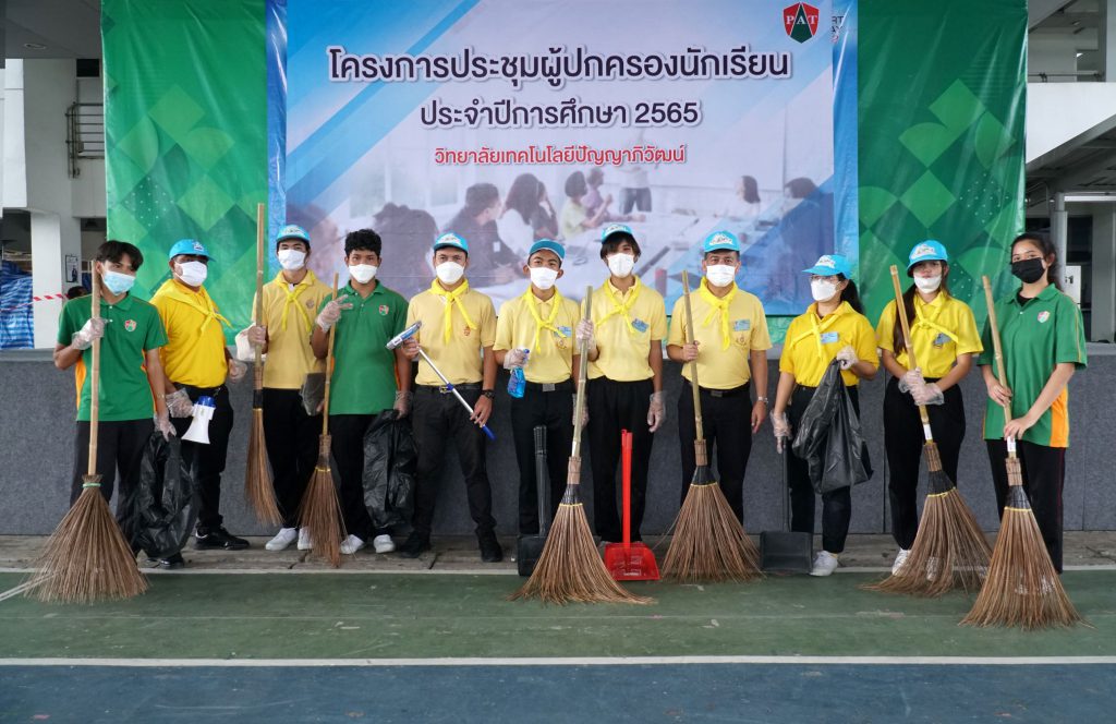 25 พฤศจิกายน 2565 วิทยาลัยเทคโนโลยีปัญญาภิวัฒน์ จัดกิจกรรมจิตอาสาพระราชทาน “เราทำความดีด้วยหัวใจ” เพื่อถวายเป็นพระราชกุศล และสำนึกในพระมหากรุณาธิคุณ พระบาทสมเด็จพระบรมชนกาธิเบศร มหาภูมิพลอดุลยเดชมหาราช บรมนาถบพิตร เนื่องในวันคล้ายวันพระราชสมภพ 5 ธันวาคม 2565 ณ ห้องประชุมปัญญางาม วิทยาลัยเทคโนโลยีปัญญาภิวัฒน์ โดยได้รับเกียรติจากนายวิเชียร เนียมน้อม ผู้แทนผู้รับใบอนุญาตและผู้อำนวยการวิทยาลัยฯ เป็นประธานในพิธี นำคณะผู้บริหาร นักเรียนนักศึกษา บุคลากร และคณะจิตอาสาพระราชทาน เปิดกรวยกระทงดอกไม้ ธูปเทียนแพ ถวายความเคารพ และกล่าวสำนึกในพระมหากรุณาธิคุณ กล่าวคำปฏิญาณฯ เบื้องหน้าพระบรมฉายาลักษณ์พระบาทสมเด็จพระวชิรเกล้าเจ้าอยู่หัว และสมเด็จพระนางเจ้าฯ พระบรมราชินี เพื่อเป็นการแสดงออกถึงความจงรักภักดี พร้อมเปิดกิจกรรม Big Cleaning Day ร่วมกันบำเพ็ญสาธารณประโยชน์ ทำความสะอาด เก็บกวาดขยะมูลฝอย บริเวณโดยรอบวิทยาลัยฯ อาทิ โรงเจเก่งเต็กตึ๊ง และชุมชนภายในซอยงามวงศ์วาน 23 อ.เมือง จ.นนทบุรี ส่งเสริมให้สภาพแวดล้อมดีขึ้น นำไปสู่การพัฒนาอย่างยั่งยืน ซึ่งการเข้าร่วมกิจกรรมครั้งนี้ถือเป็นนโยบายสำคัญในกิจกรรม 7 ส. ของวิทยาลัยฯ ที่อบรมปลูกฝังให้นักเรียนนักศึกษาและบุคลากร มีส่วนร่วมในกิจกรรมช่วยเหลือชุมชน สังคม ดังแนวทาง สามประโยชน์ คือ ประเทศชาติ ประชาชน และองค์กร