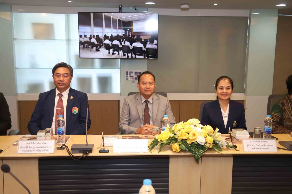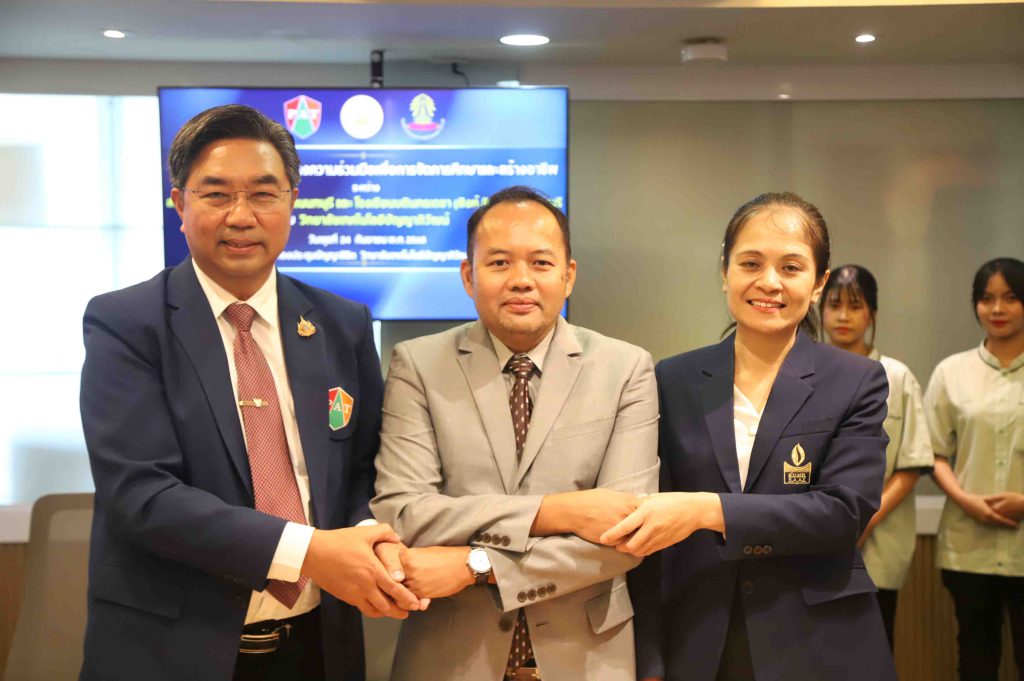 24 กันยายน 2568 วิทยาลัยเทคโนโลยีปัญญาภิวัฒน์ นายวิเชียร เนียมน้อม ผู้แทนผู้รับใบอนุญาตและผู้อำนวยการวิทยาลัยเทคโนโลยีปัญญาภิวัฒน์ ลงนามบันทึกข้อตกลงความร่วมมือไตรภาคี เพื่อการจัดการศึกษาและสร้างอาชีพ ระหว่าง วิทยาลัยเทคโนโลยีปัญญาภิวัฒน์ โรงเรียนบดินทรเดชา (สิงห์ สิงหเสนี) นนทบุรี และสำนักงานศึกษาธิการจังหวัด นนทบุรี โดยมี นายณัทชัย ใจเย็น ศึกษาธิการจังหวัดนนทบุรี ดร.ปิยาภา ศิริเวทิน ผู้อำนวยการกลุ่มพัฒนาการศึกษา สำนักงานศึกษาธิการจังหวัดนนทบุรี นางสายไหม ดาบทอง ผู้อำนวยการโรงเรียนบดินทรเดชา (สิงห์ สิงหเสนี) นนทบุรี ดร.ฉัชร์ภิมุก อภินันท์โชติสกุล ผู้อำนวยการกลยุทธ์การศึกษาและพัฒนาธุรกิจ วิทยาลัยเทคโนโลยีปัญญาภิวัฒน์ ดร.ธเรศวร์ ธนะสมบูรณ์ และอาจารย์นางปิยาพร ฉลภิญโญ ที่ปรึกษาวิทยาลัยเทคโนโลยีปัญญาภิวัฒน์ ร่วมเป็นสักขีพยาน โดยมีวัตถุประสงค์ เพื่อประสานความร่วมมือด้านวิชาการ และวิชาชีพ การสร้างเครือข่ายเพื่อยกระดับคุณภาพการจัดการศึกษาอย่างเป็นระบบ ทั้งในระดับมัธยมศึกษาตอนปลาย และต่อเนื่องเชื่อมโยงสู่ระดับอาชีวศึกษา สร้างโอกาสและขยายโอกาสทางการศึกษาให้กับผู้เรียน ส่งเสริมสนับสนุนให้ผู้เรียนได้พัฒนาการเรียนรู้ ทักษะ และประสบการณ์จริงจากการฝึกอาชีพในสถานประกอบการ และมีโอกาสศึกษาต่อในระดับที่สูงขึ้น นอกจากนี้ วิทยาลัยเทคโนโลยีปัญญาภิวัฒน์ ได้มอบทุนการศึกษาจำนวน 10 ทุน มูลค่า 1,300,000 บาท ให้กับโรงเรียนบดินทรเดชา (สิงห์ สิงหเสนี) นนทบุรี เพื่อศึกษาต่อระดับประกาศนียบัตรวิชาชีพชั้นสูง(ปวส.) ในสาขาวิชาเทคนิควิทยาการนาฬิกา จำนวน 5 ทุน และสาขาวิชาการจัดการธุรกิจค้าปลีก จำนวน 5 ทุน และได้มีโอกาสเยี่ยมชมห้องปฏิบัติการเทคนิควิทยาการนาฬิกา แห่งแรกและแห่งเดียวในประเทศไทย
