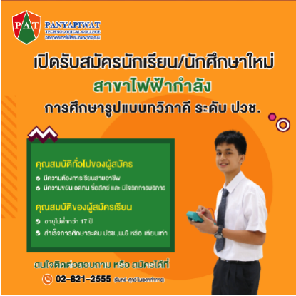 โทรศัพท์ : 02-821-2555 อีเมลล์ : contact@panyapiwat.ac.th